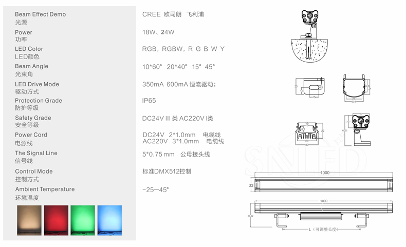 18W大功率洗墻燈24W洗墻燈SNLED品牌