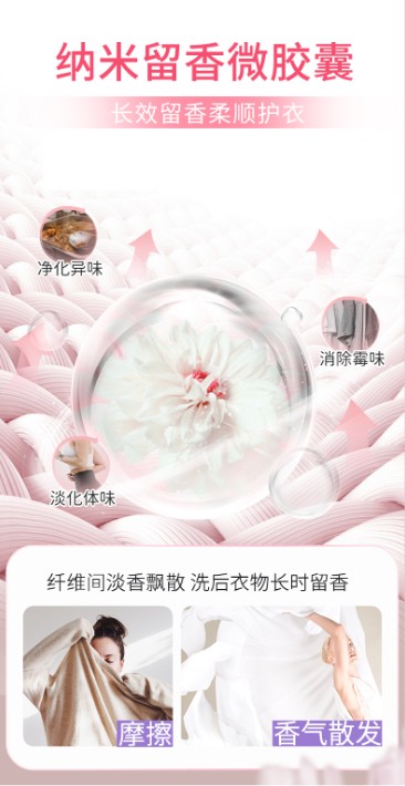 產(chǎn)品成分:留香微膠囊、柔順因子、進(jìn)口香氛