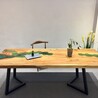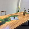 北歐簡約河流實木茶幾樹脂胡桃木客廳創(chuàng)意辦公室大板鐵藝桌子