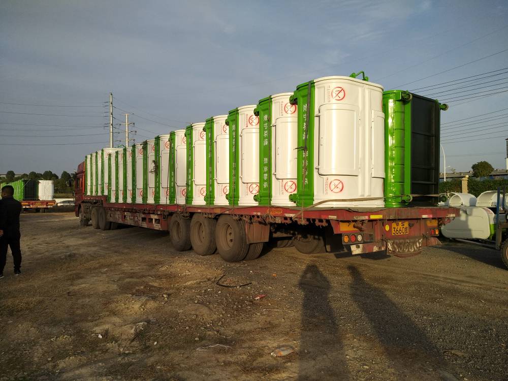 垃圾箱容量大,勾臂垃圾箱容量為:2-18立方不等,而普通的pvc垃圾桶只能裝240l,不能滿足實(shí)際需要。普通的居民區(qū)單元樓配備2個(gè)pvc垃圾桶時(shí)垃圾還是會(huì)堆起來(lái)或者散落在地面,而采用2.5立方的勾臂垃圾車,可以解決這一問(wèn)題;