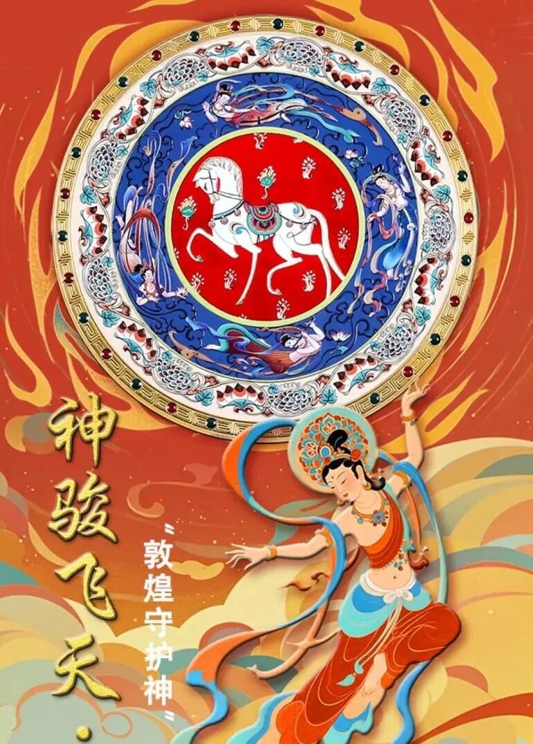 敦煌壁畫中典型的代表飛天與2026馬年生肖的融合莫高窟北魏第257窟《鹿王本生》故事畫中為國王拉車的白馬脖頸彎曲如鉤,嘴尖而腹瘦,腿部細長,步履輕盈的白馬栩栩如生。和壁畫上的飛天,構(gòu)成了燦爛輝煌的藝術(shù)。