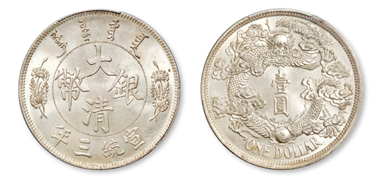 宣統(tǒng)三年大清銀幣“反龍”版壹圓樣幣/PCGS SP63+以138萬成交