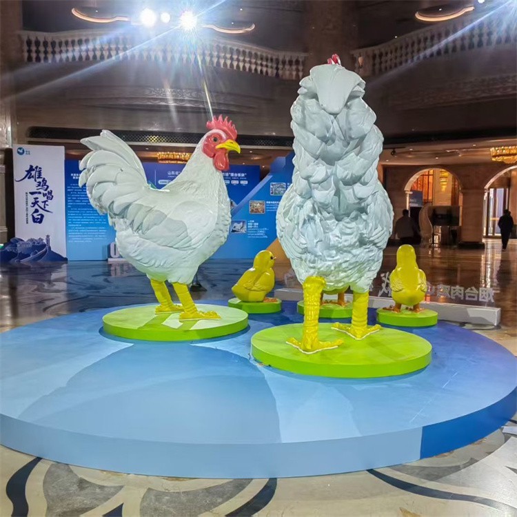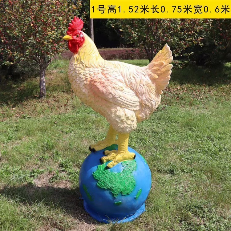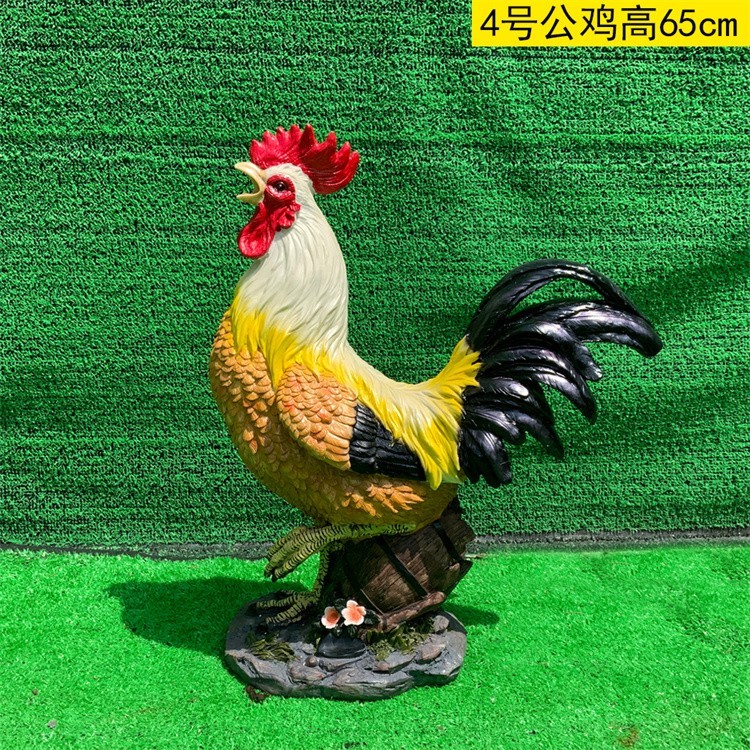 仿真大公雞雕塑,雞冠上矗立著細長而硬實的羽毛,雕塑的眼睛明亮有神。肌肉在陽光下波動,羽翼略微伸開,好像隨時都能展翅暢飛,仿佛在詮釋自由的希望。它略微張開的嘴,詮釋著生命的美好與活力。