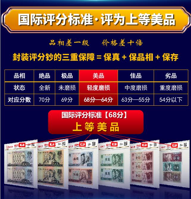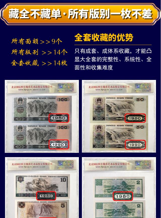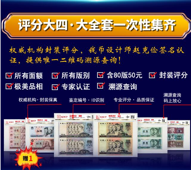 四套人民幣全面額熒光鈔、封裝評分大四(含80版50元)、四版1角/5角龍鳳胎全同號百連號鈔等四版珍鈔大全套共計251枚