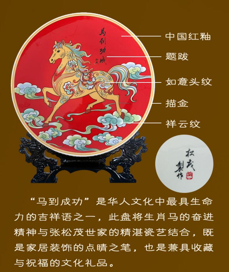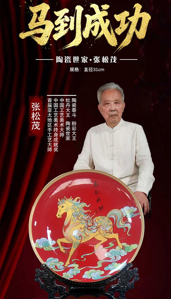 “馬到成功”是華人文化中具生命力的吉祥語之一,此盤將生肖馬的奮進精神與張松茂世家的瓷藝結(jié)合,既是家居裝飾的點睛之筆,也是兼具收藏與祝福的文化禮品。