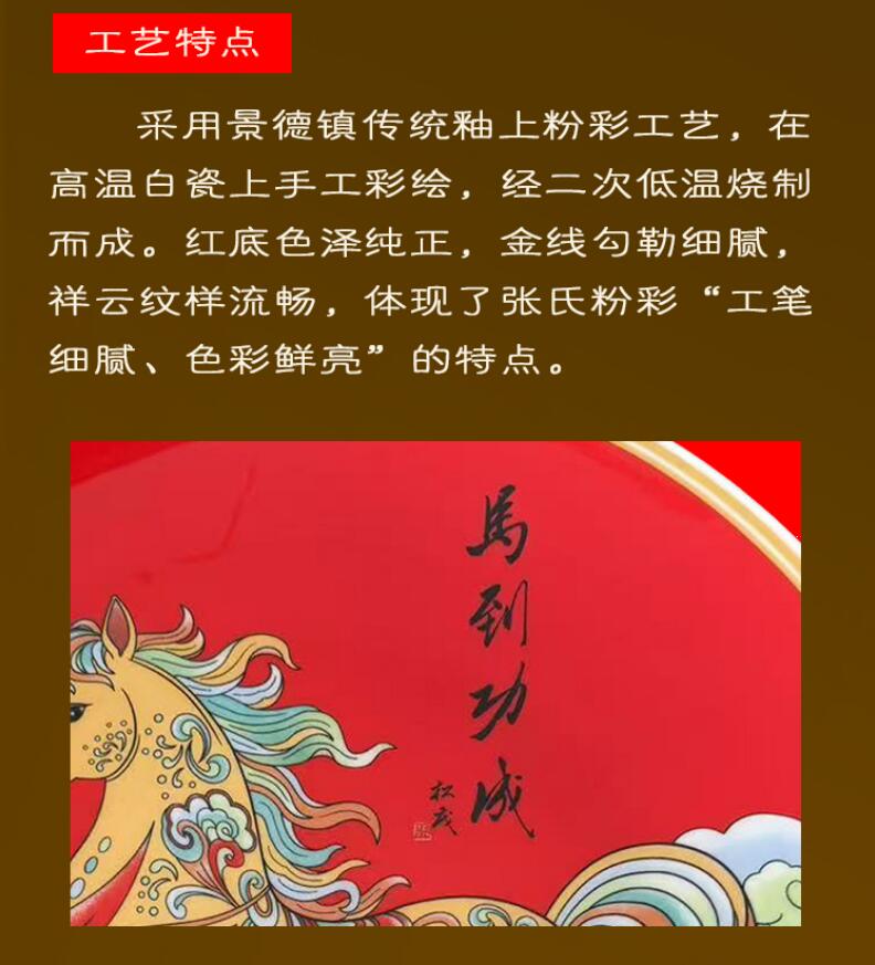 《馬到成功》賞盤更可能是張松茂陶瓷世家傳承人的創(chuàng)作,延續(xù)了張氏粉彩的技法與風格,專為馬年設(shè)計的紀念作品。