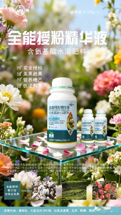 授粉精華液授粉精華液對(duì)于連續(xù)開花作物,能協(xié)調(diào)營(yíng)養(yǎng)與生殖生長(zhǎng)平衡,確保每批花都獲得足夠資源支持,持續(xù)提高坐果率。它能調(diào)節(jié)庫(kù)-源關(guān)系,使養(yǎng)分更流向花果,抑制新梢等非目標(biāo)庫(kù)的過度競(jìng)爭(zhēng),確保花果養(yǎng)分優(yōu)勢(shì)。其配方有助于減少日灼、風(fēng)疤等物理傷害,產(chǎn)出表光好、瑕疵少的精品果。本品通過提供易于吸收的有機(jī)氮和碳源,幫助植株在逆境中快速合成新功能蛋白,加速生理適應(yīng)。