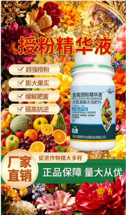 授粉精華液通過增強(qiáng)植物整體能量代謝,為耗能的授粉過程提供充沛動(dòng)力,確保生化反應(yīng)順利進(jìn)行。其與緩效成分結(jié)合,能快速應(yīng)對(duì)突發(fā)落果風(fēng)險(xiǎn),又能持久提供保護(hù),覆蓋關(guān)鍵危險(xiǎn)期。通過提高果實(shí)內(nèi)在與外觀品質(zhì),顯著增強(qiáng)市場(chǎng)競(jìng)爭(zhēng)力,實(shí)現(xiàn)優(yōu)質(zhì)優(yōu)價(jià)。其抗逆作用具有持續(xù)性,一次使用可提升植株整體抗逆閾值,應(yīng)對(duì)多種逆境挑戰(zhàn)。