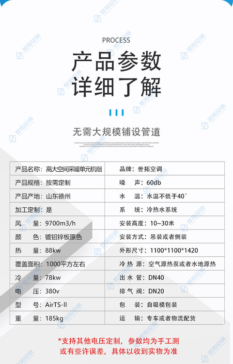 側(cè)面安裝:除了吊頂安裝,高大空間冷暖機(jī)組還可以根據(jù)需要選擇側(cè)面安裝等方式。這種靈活性使得設(shè)備能夠更好地適應(yīng)不同的建筑結(jié)構(gòu)和空間布局。