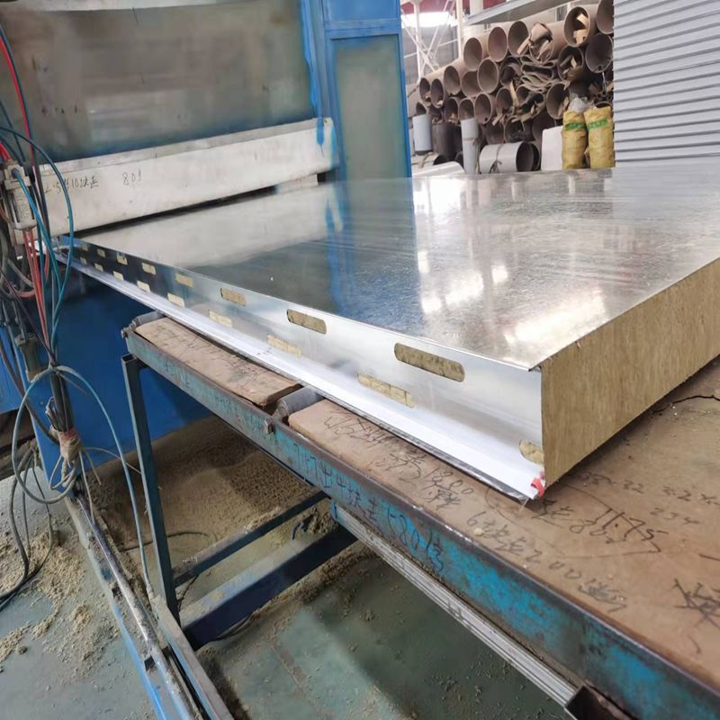 12cm巖棉烘道板 機(jī)制巖棉凈化板 隔音防火彩鋼板 彩鋼巖棉夾芯板
