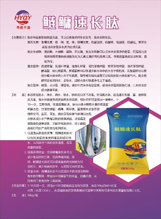 養(yǎng)鰱鳙,就選鰱鳙速長肽!快速補(bǔ)充水體肥力,培育豐富藻類餌料,助力幼苗健康成長。穩(wěn)定水體各項(xiàng)指標(biāo),改善水質(zhì)底質(zhì),促進(jìn)魚體生長增重,,輔助降素,減少病害,提升畝產(chǎn)量與養(yǎng)殖收益。