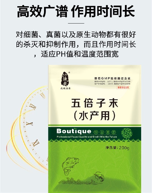 五倍子末可以配合其他抗真菌的藥物使用,促進魚體傷口的盡快愈合。缺點是用量大,藥粉末需要煎煮使用麻煩。