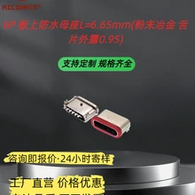 6P板上防水母座L6.65mm(粉末冶金舌片外露0.95)