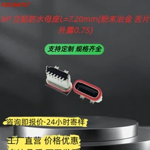 6P立貼防水母座L7.20mm(粉末冶金舌片外露0.75)