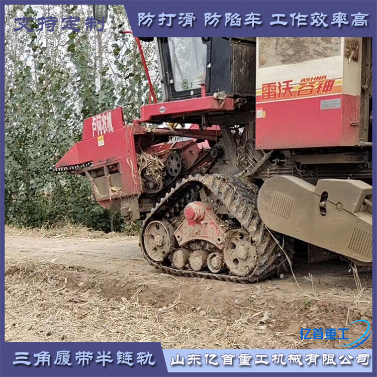 收割機改裝防陷半鏈軌,收割季節(jié)不怕雨水大。泥地,松軟地,黏土地,爛泥田,澇洼地,坑洼地等地形作業(yè)收割可防止輪胎打滑,防止陷車,通過性能強。