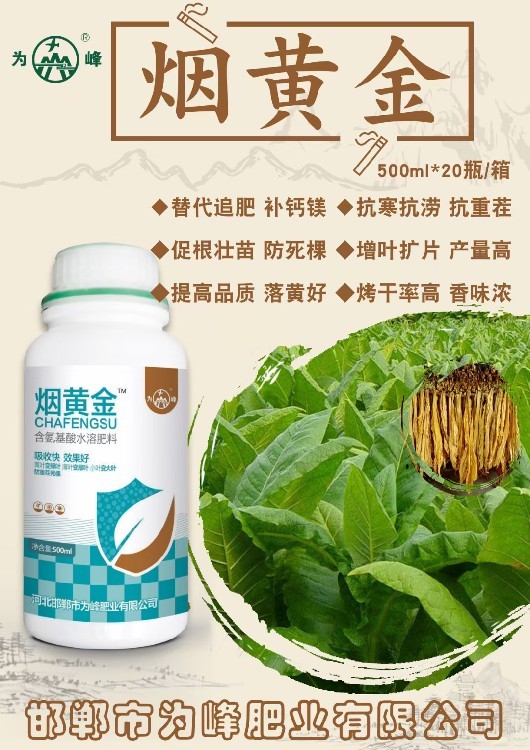 為峰煙黃金是煙草種植葉面肥,集促長、抗病、提質(zhì)、增產(chǎn)等多重功效于一體,配方科學(xué)、使用便捷,葉面噴施即可快速見效。該產(chǎn)品無需復(fù)雜的使用流程,適配各類煙草種植場景,能解決煙草種植中的各類痛點(diǎn),減少田間管理難度,降低種植成本,讓種植戶省時(shí)、省力、省心,輕松實(shí)現(xiàn)煙草豐產(chǎn)優(yōu)產(chǎn),助力煙草種植發(fā)展。?