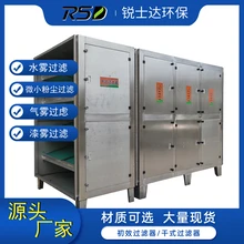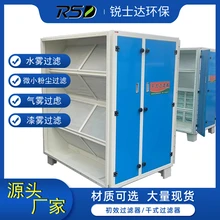 干式過濾器設(shè)備內(nèi)部主要由初效過濾+F6過濾袋組成,初效過濾由兩個除效網(wǎng)格夾初效過濾棉組成一套過濾器,凈化效率可以達到95%以上,主要通過過濾器的纖維改變顆粒物的慣性力方向,通過噴氣流多次改變方向流動,使得顆粒物可以被粘附在折流板壁上,能有效的去除廢氣中的粉塵和水霧,顆粒物和水霧會被濾料有效的截留下來,以送入風量的潔凈從而達到過濾顆粒物的效果。