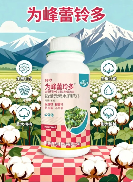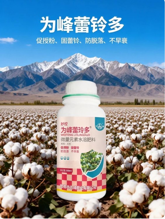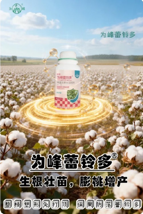 為峰蕾玲多針對棉花徒長、打頂費(fèi)工、產(chǎn)量偏低等問題,提供一站式解決方案。其配方能抑制棉花生長,控制徒長枝生長,平衡營養(yǎng)生長與生殖生長,塑造緊湊株型,無需人工打頂,省時省工。同時,富含硼、鉀等微量元素及活性物質(zhì),可促進(jìn)棉花授粉座桃,提高座桃率,減少落花、落蕾、落鈴現(xiàn)象,增加結(jié)鈴數(shù)量,促進(jìn)棉桃膨大,延緩植株早衰,改善纖維長度與強(qiáng)度,增強(qiáng)抗寒、抗旱、抗病能力,適配不同產(chǎn)區(qū)、不同品種棉花,助力高產(chǎn)穩(wěn)產(chǎn)。