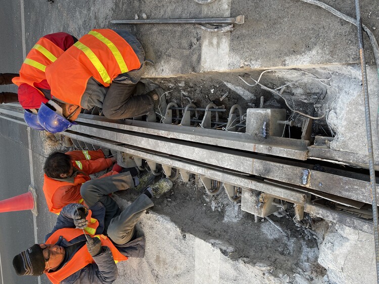 橋梁伸縮縫混凝土孫上修補(bǔ)施工流程鑿毛→ 打掃→ 焊接→ 混合→ 修理→ 維護(hù)→ 節(jié)理切割→ 交通開放