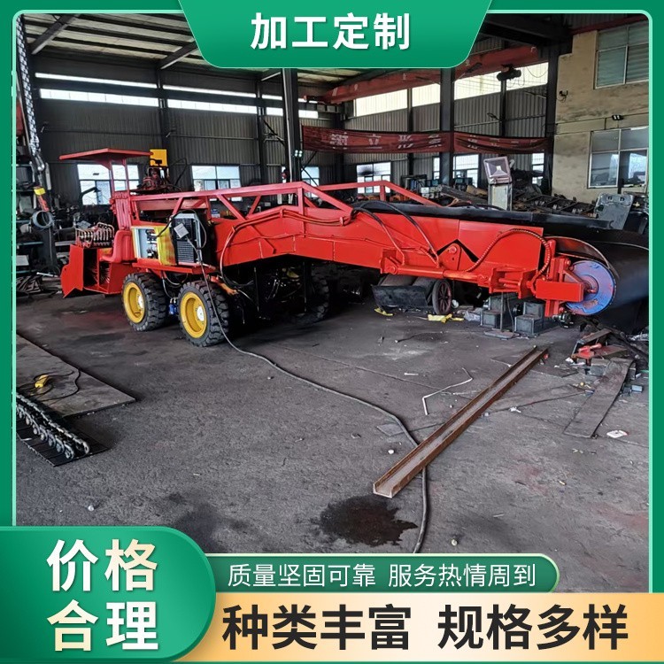 挖掘采集功能由機(jī)械手完成,機(jī)械手具有挖掘、伸臂、裝料、卸料功能,大臂可上升、下降、左右回轉(zhuǎn),挖掘采集的操縱由全液壓控制,由六個(gè)手柄操作,每個(gè)手柄控制兩個(gè)動(dòng)作,共十二個(gè)動(dòng)作,此技術(shù)綜合采用大型挖掘機(jī)操作流程改進(jìn)而成使用方便,易操作,輸送,裝車功能由輸送機(jī)系統(tǒng)完成,其輸送架由液壓缸控制升降,輸送架下降時(shí)可將前輪支起,輪式扒渣機(jī)廠家,輸送架前接料口與礦石接觸面更加緊密,工作時(shí)穩(wěn)定性更強(qiáng),可以接合散料,平整常地,傳送帶寬度為650- 700mm,傳送速度為800 -900mm/秒,傳送帶又一臺(tái)2.2kw電機(jī)帶動(dòng)減速機(jī)驅(qū)動(dòng)主動(dòng)滾筒,此方式傳動(dòng)性能更穩(wěn)定,使用壽命更長,扒渣機(jī)操作,維修更方便。