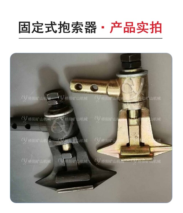 猴車固定式抱索器主要由小抱體、大抱體、鋼性頂桿、平墊、彈墊、螺母和螺栓這幾個(gè)部件組成,