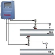 將配對溫度傳感器分別安裝在熱交換回路的進水和回水的管道上,將流量傳感器安裝在入口或出口的管道上,流量傳感器發(fā)出流量信號,配對溫度傳感器發(fā)出進水和回水的溫度信號,計算模塊采集流量和溫度信號,經(jīng)過計算顯示出載熱或者冷媒介質(zhì)從入口到出口所釋放或吸收的冷熱能量值。