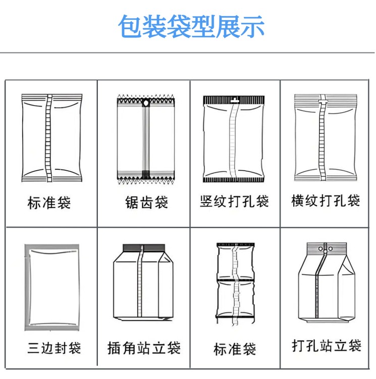 袋型多樣:通過(guò)更換成型器和調(diào)整參數(shù),可生產(chǎn)枕形袋、三邊封、四邊封、自立袋、帶角撐袋等多種袋型。