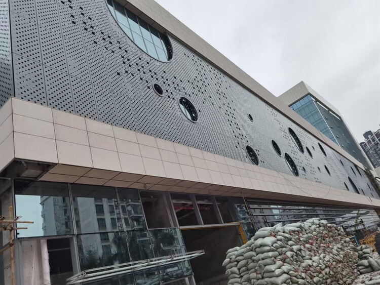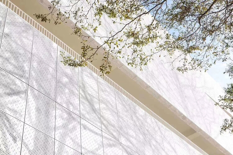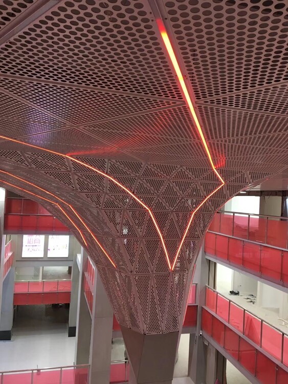 不規(guī)則沖孔鋁單板較常規(guī)圓形孔鋁單板加工上要求更高。一般來(lái)說(shuō),每一種大小不同、形狀不同的孔都分別需要一個(gè)模具,在加工成本上會(huì)有所增加,但這種不規(guī)則沖孔鋁單板特的裝飾效果依然為客戶所喜歡。