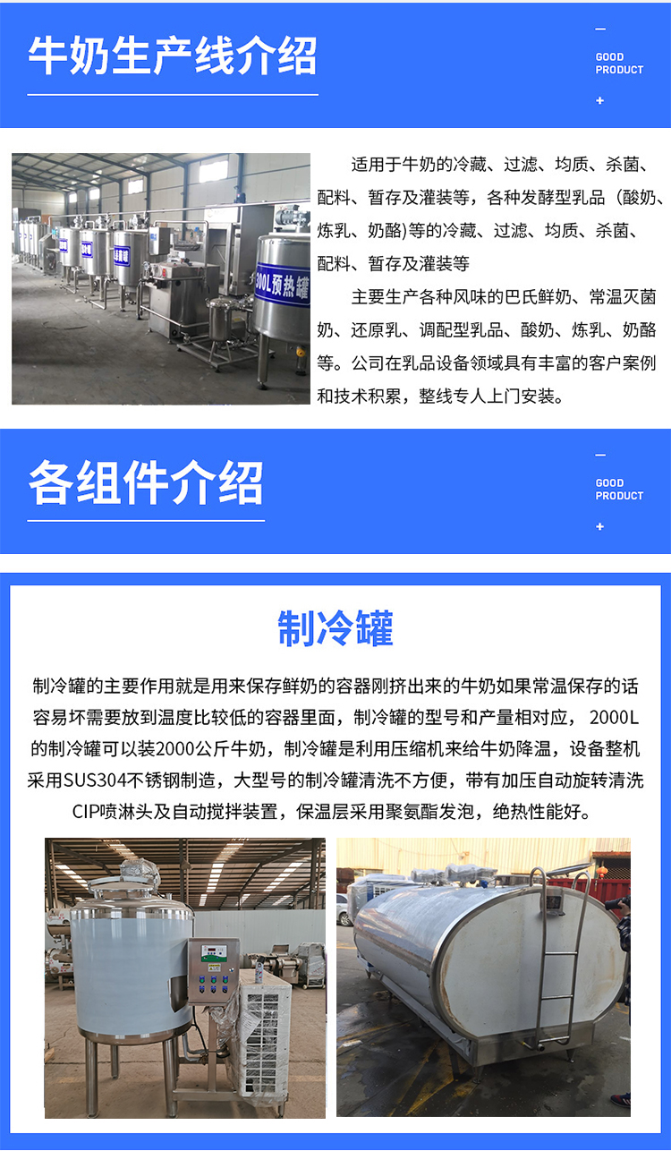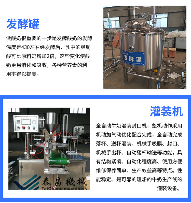 酸奶生產(chǎn)加工機(jī)器,發(fā)酵型果奶生產(chǎn)線 奶制品加工生產(chǎn)設(shè)備廠家主要加工巴氏奶、酸奶的設(shè)備,以鮮奶為原料,利用巴氏消毒法的原理低溫殺菌,可殺死各種生長(zhǎng)型致病菌,殺菌率可達(dá)97.3%-99.9%,(魯經(jīng)理:188**5364--5289)經(jīng)消毒后殘留的是對(duì)人體有益無(wú)害的的益生菌,因此這也是為什么要在4℃保存的原因。