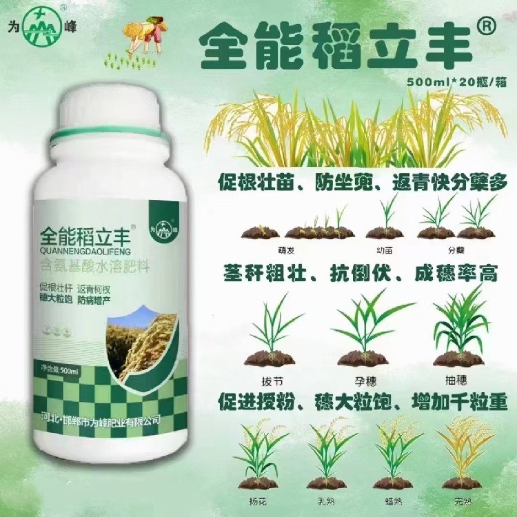 科技賦能,提質(zhì)增效!為峰肥業(yè)緊跟農(nóng)業(yè)發(fā)展趨勢(shì),研發(fā)的水稻發(fā)蔸劑不僅關(guān)注產(chǎn)量,更關(guān)注品質(zhì)。產(chǎn)品能增加稻米中的淀粉含量,改善米飯口感,提升商品價(jià)值。同時(shí),硅肥的補(bǔ)充還能增強(qiáng)稻米的耐儲(chǔ)運(yùn)性,減少產(chǎn)后損失。這是一款真正為農(nóng)戶著想的水稻高產(chǎn)肥。廠家貨源充足,物流快捷,期待與您的合作,共同服務(wù)現(xiàn)代農(nóng)業(yè)!
