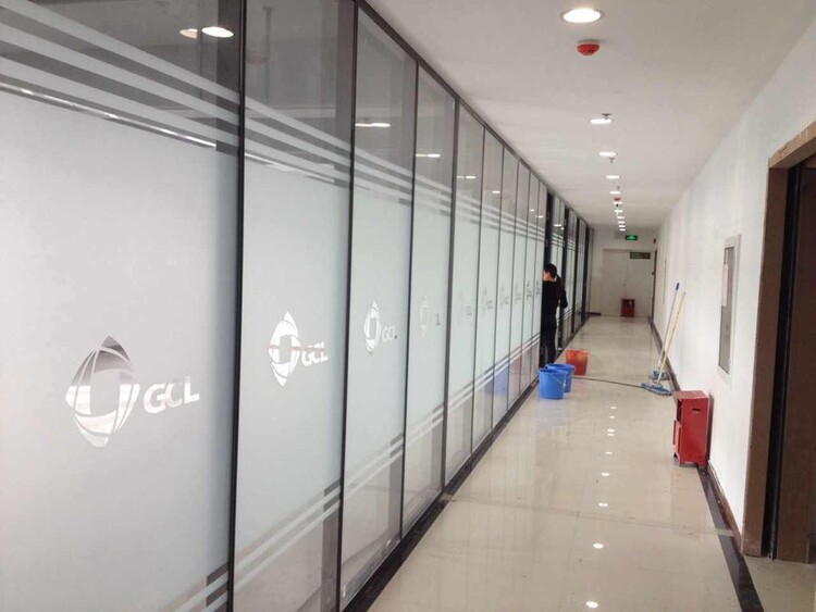鋁合金隔斷玻璃整體就位,校正垂直度與平整度,將聚苯乙烯泡沫塑料插入槽口,使玻璃和鋁框槽的接縫平整且緊密,而后用硅酮膠。注膠之時,一只手握著注膠槍,另一只手均勻握住,將結構膠均勻地注入縫隙中,填滿,然后用塑料片刮掉厚玻璃兩側的玻璃膠,并將玻璃表面的膠漬清理干凈。