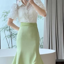 輕商務(wù)通勤時(shí)裝或許春夏歐美設(shè)計(jì)感襯衣醋酸連衣裙