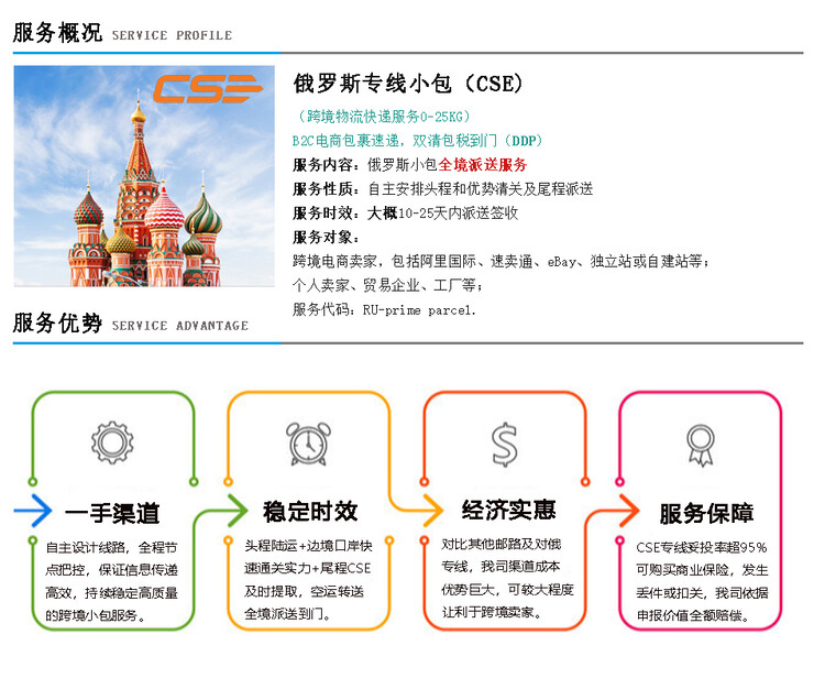 尾程對接CSE/等本土派送公司,俄羅斯可全境派送到門。