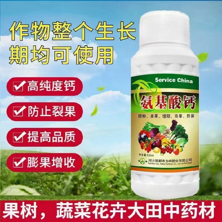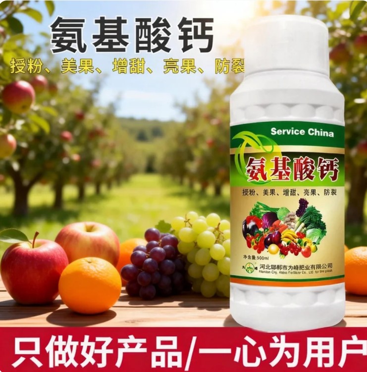 氨基酸鈣,補鈣,護株提質(zhì)兩不誤!本品摒棄傳統(tǒng)鈣劑弊端,采用螯合工藝,讓鈣元素與氨基酸形成穩(wěn)定的螯合體系,不易被土壤固定,能快速被作物吸收利用,快速緩解缺鈣癥狀。富含多種游離氨基酸和螯合鈣,雙重營養(yǎng),既能補充鈣營養(yǎng),又能為作物提供有機營養(yǎng),促進根系發(fā)育,增強植株長勢,提高坐果率與結(jié)實率。適用于柑橘、蘋果、桃、葡萄、番茄、玉米、小麥等各類作物,可有效預防裂果、畸形果、臍腐病、苦痘病,提升果實品質(zhì)與商品價值。安全環(huán)保,不燒苗、不燒葉,適配各種土壤和種植場景,堅持使用,作物莖稈粗壯、葉片濃綠,果實飽滿、口感更佳,助力農(nóng)戶輕松實現(xiàn)提質(zhì)增產(chǎn)!?