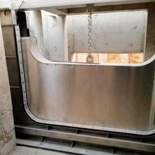 鑄鐵閘門有方形、圓形兩種。鑄鐵閘門一般由門葉和門框兩部分組成,門體和門框的材料為鑄鐵,一般整體鑄造、整體加工。 門體一般采用面板與肋的結(jié)構(gòu),面板可做平面或拱形。門體一般整體鑄造和機加工,但尺寸較大的可采用分塊組成式。門體上一般采用整體式金屬止水,兼作支承滑塊,金屬止水用同材料制作的沉頭螺釘緊固在門體上,螺釘頭部與止水工作面一起精加工,一些尺寸較大的也可“P”形橡皮止水。 門框為鑄鐵閘門與基礎之間的連接構(gòu)件,相當于平面鋼閘門的埋高部分。門框包括下部門框和上部導軌兩部分。下部門框一般整體鑄造加工,導軌可用螺栓(螺釘)與門框相接,或與下部門框整體鑄造,在門體開啟到高位置時,導軌的***應高于門體的水平中心線。