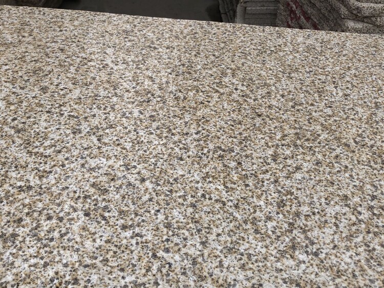 先將黃金麻花崗巖鋸成板,將表面經(jīng)過(guò)初磨之后,放在固定架上,加工前要對(duì)黃金麻石板進(jìn)行干燥處理。