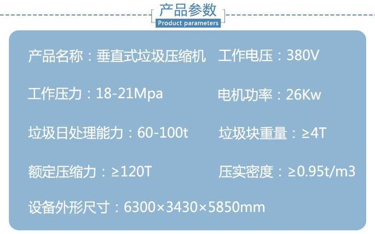 垂直式垃圾中轉(zhuǎn)站垃圾壓縮箱體采用加厚碳鋼板焊接,底板厚度10mm、側(cè)板厚度8mm,壓縮箱體使用壽命不小于5年。