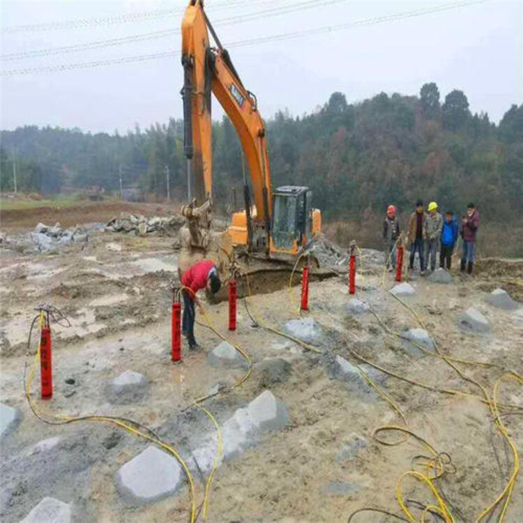 免爆破液壓劈裂設備,包括液壓動力站和劈裂棒,所述液壓動力站包括儲油腔和出油口,所述劈裂棒包括入油口,油缸和活塞,所述出油口和入油口之間通過油管連接.本設備在進行巖石劈裂時無震動,無沖擊,無噪音,無粉塵,數(shù)秒鐘內可完成分裂,工作,可控分裂,分裂尺寸,重量適中,操作簡單,維護保養(yǎng)方便,可在室內和狹窄場地進行拆除工作.