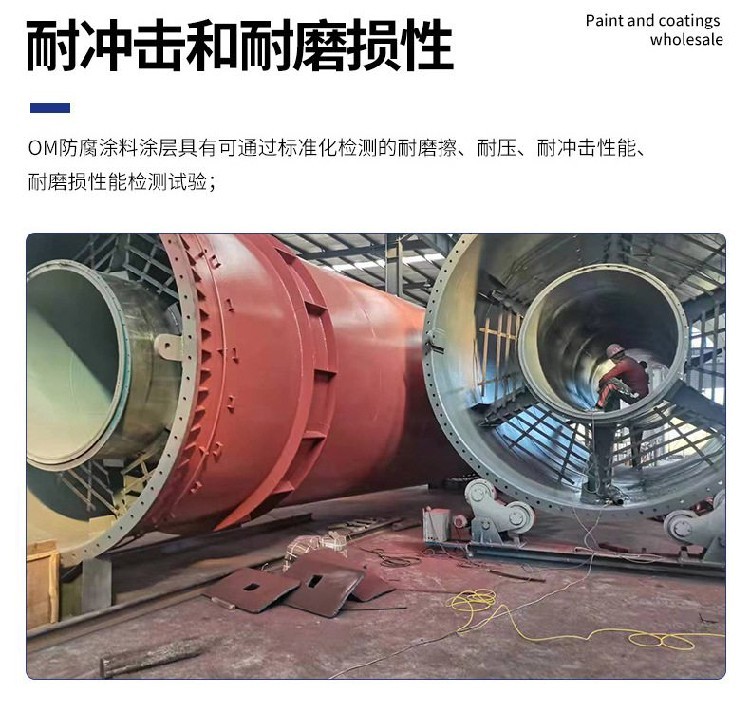 耐化學腐蝕?:對酸、堿、鹽介質具有抵抗力,在 5%-30% 濃度的硫酸、硝酸、鹽酸及飽和 Ca(OH)?水溶液中浸泡 30 天漆膜無變化,耐鹽霧試驗可達 2000 小時