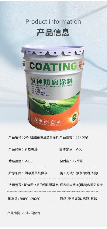 OM-5 煙囪防腐涂料是一種?耐酸耐溫防腐材料?,專為煙囪、煙道等高溫腐蝕環(huán)境設計,具有的?抗?jié)B透性?和?長效防腐能力?,適用于電力、化工、鋼鐵等行業(yè)的煙囪內外壁及脫硫設備防護