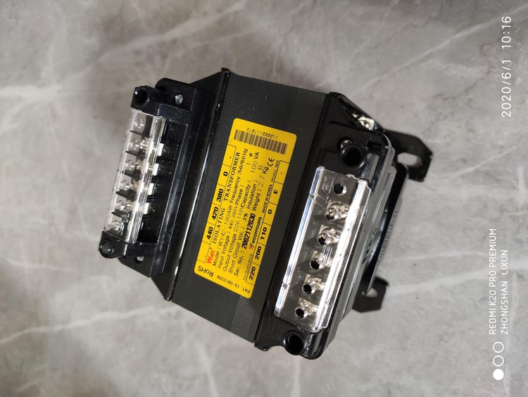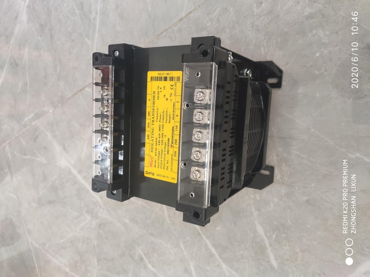 5kW隔離型漏磁變壓器的結(jié)構(gòu)類似于霓虹燈變壓器,中間的兩個繞組為初級繞組,為了適應(yīng)220V或380V電源,初級繞兩個0V-190V-220V相同的繞組,將它們串聯(lián)或并聯(lián),可適應(yīng)220V、380V或440V的電源電壓,次級電壓為1100V/5A,分繞成兩個繞組,置于初級繞組的兩邊,初、次級繞組之間設(shè)有4個磁分路,將初、次級繞組隔開,當(dāng)變壓器通電時,能起到限流的作用。次線繞組輸出電路中串聯(lián)一個電容器,再與UV燈管相接,就是一個RLC諧振電路。當(dāng)電源電壓變化時,次級回路還有穩(wěn)壓作用,由于電容器C的存在,也使電路的功率因數(shù)有所提高。