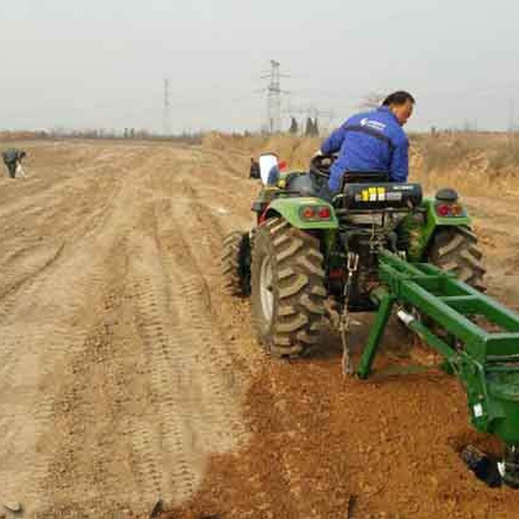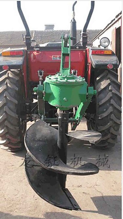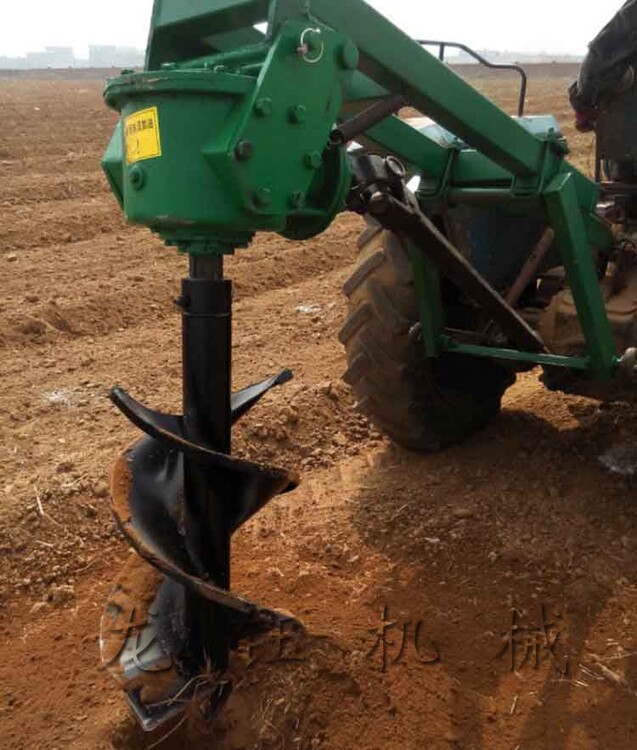中型拖拉機螺旋挖坑機 小型植樹挖坑機械我們再來算一筆賬,平均挖80個洞需要一小時,一小時油耗卻只需要0.6升,那么平均一個洞的油耗成本約為0.045元。加上人工成本約合不到1毛錢就可以鉆一個直徑40*50CM左右的坑洞。那么使用拖拉機帶式挖坑機根據(jù)平時我們操作經(jīng)驗和用戶實地實踐,平均每小時可打坑120個左右,那么根據(jù)一個人的人工加柴油的油耗成本約在2毛錢左右一個洞。并且機器能夠很快的種植作業(yè)。速度快又省力,這些人工是無法來比較的。挖坑作業(yè)時,使拖拉機液壓懸掛裝置處于浮動狀態(tài),使鉆頭對準(zhǔn)挖坑標(biāo)記中心靠自重下落,拖拉機的動力輸出軸通過傳動軸和減速器帶動鉆頭旋轉(zhuǎn)入土,
