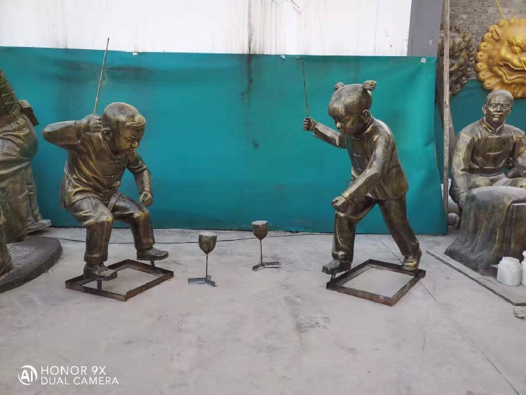 仿銅玻璃鋼童趣雕塑是一種特的藝術(shù)表現(xiàn)形式,它能夠給人們帶來歡樂和驚喜。這種雕塑是由一種名為玻璃鋼的纖維增強塑料制成,形狀類似于銅雕,但不同于傳統(tǒng)的銅雕,玻璃鋼雕塑更加輕盈靈動,不易受到天氣影響,更加耐用和美觀。這種仿銅玻璃鋼雕塑中,小孩玩耍是其中的一個主題。這些雕塑形象生動,有趣,很容易讓人們感受到童年的快樂。這些雕塑通常的形態(tài)是小孩伴隨著小動物或者玩具,或者是一群小孩在進行游戲,又或是踢球、踢毽子、撞拐、跳繩、跳馬、推鐵環(huán)、玩陀螺等等,這些場景都能夠勾起人們對于童年時光的美好回憶,讓大家在喧囂的城市里得到一些愉悅和放松。這種仿銅玻璃鋼雕塑對于人們的生活和城市的美觀有重要的影響。在城市中,除了高樓大廈和交通設(shè)施,適當(dāng)?shù)乃囆g(shù)氛圍也是城市精神文明的重要組成部分。如今,人們越來越關(guān)注城市環(huán)境的美觀與藝術(shù)性,這種仿銅玻璃鋼雕塑正是城市中美化環(huán)境、提高城市品質(zhì)的一種重要手段。