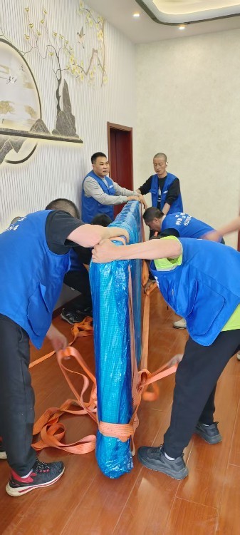 現(xiàn)場督導(dǎo)指揮搬運(yùn)工人根據(jù)物品所帖標(biāo)簽對照歸位處的標(biāo)識一次性將物品碼放到位,保證輕拿輕放、不磕不碰,使搬運(yùn)工作井然有序。
