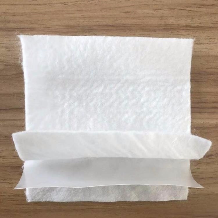 200/0.2二布一膜是由兩層土工布和一層塑料薄膜經(jīng)加工疊加而成,外層土工布夾在塑料薄膜上以增強(qiáng)強(qiáng)度和保護(hù)作用,確保復(fù)合土工布在工程應(yīng)用中始終具有一定的強(qiáng)度和防滲功能。
