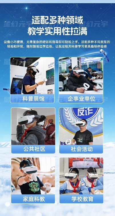 對于科技館、主題展區(qū)、研學基地而言,VR航空航天學習機能夠增加場館互動性和吸引力,讓學習更加立體生動。