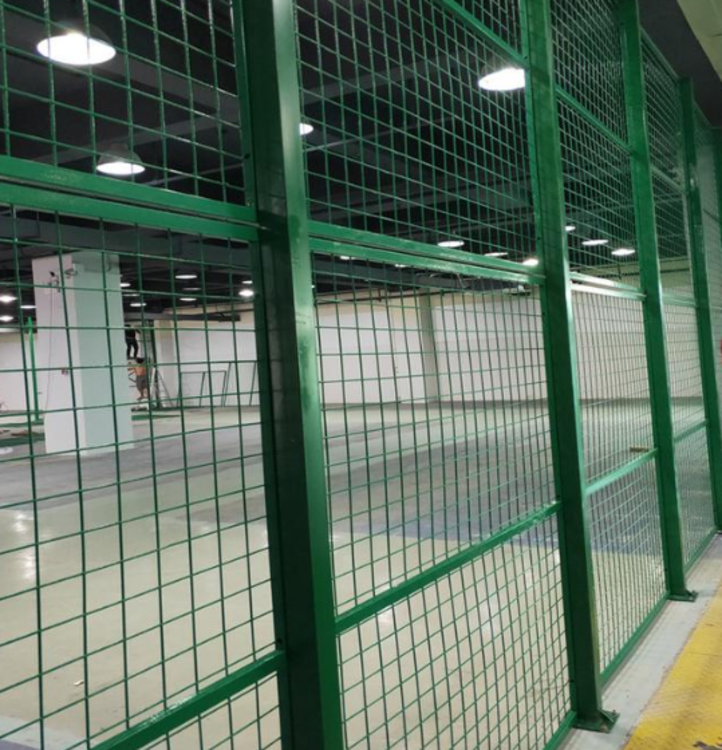 車間隔離網(wǎng),也叫倉(cāng)庫(kù)隔離帶車間防護(hù)網(wǎng),材質(zhì):Q235低碳冷拔鋼絲或者電鍍鋅絲,熱鍍鋅絲。網(wǎng)孔:50mm x 50mm(方孔) 或50mm*100mm,或50的倍數(shù)的孔型。