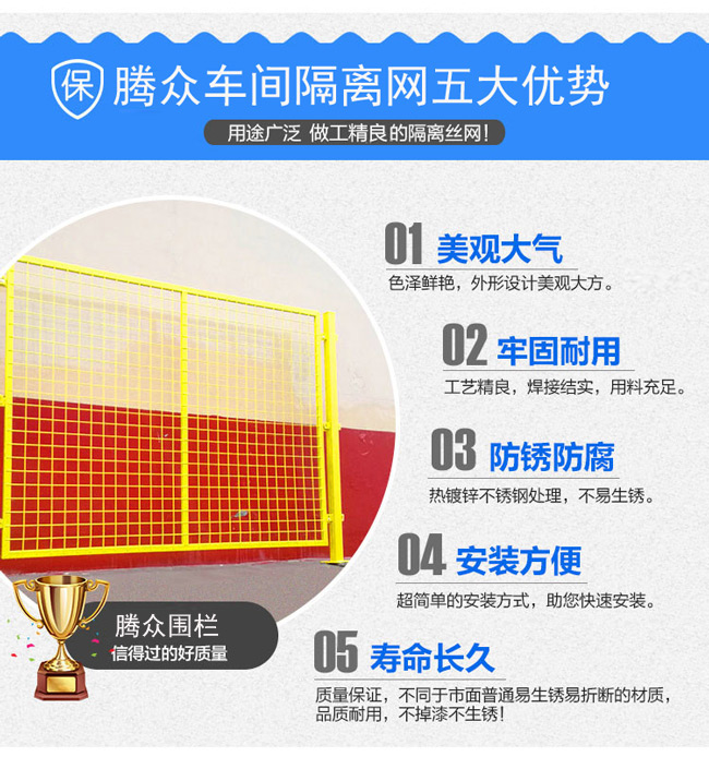 車間護(hù)欄網(wǎng):又稱之為車間隔離柵、車間隔離網(wǎng)、倉庫隔離柵等車間護(hù)欄網(wǎng)