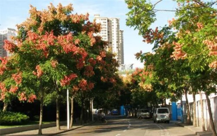欒樹春季嫩葉多為紅葉,夏季黃花滿樹,入秋葉色變黃,果實(shí)紫紅,形似燈籠,十分美麗;欒樹適應(yīng)性強(qiáng)、季相明顯,是理想的綠化,觀葉樹種。